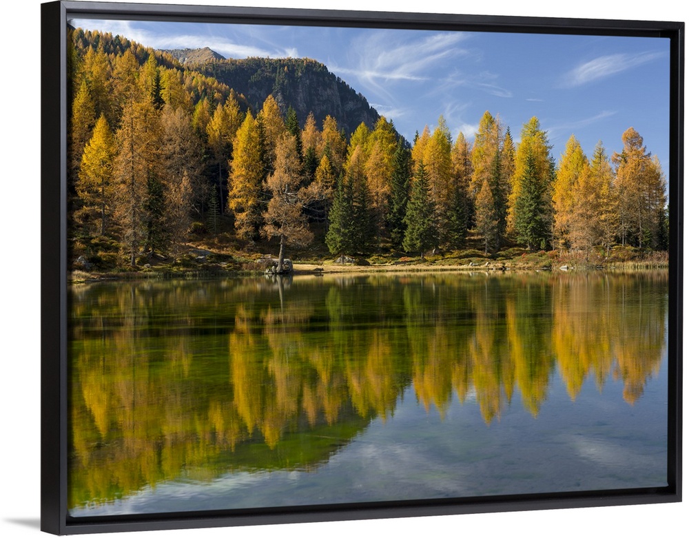 <p>Lago San Pellegrino In Fall At Passo San Pellegrino In The Dolomites, Italy</p>