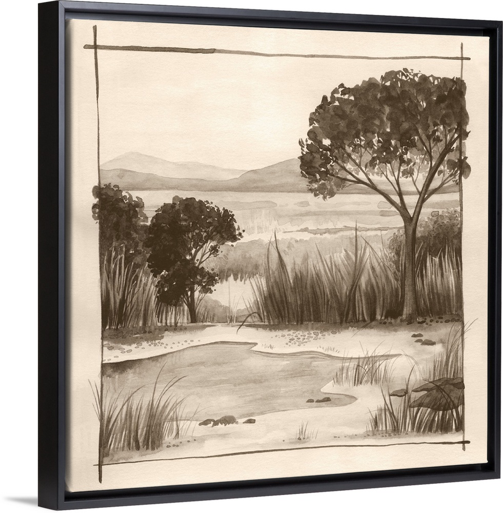 Art Traditional Black and White Wall Art Decorative Art Landscapes Lake Moody Vintage Painting Grace Popp Watercolor