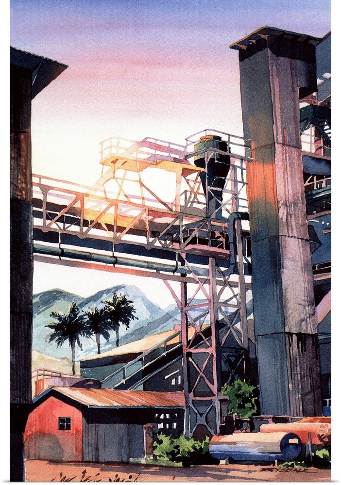 <p>Watercolor painting of an actual abandoned sugar mill in Maui, Hawaii</p>