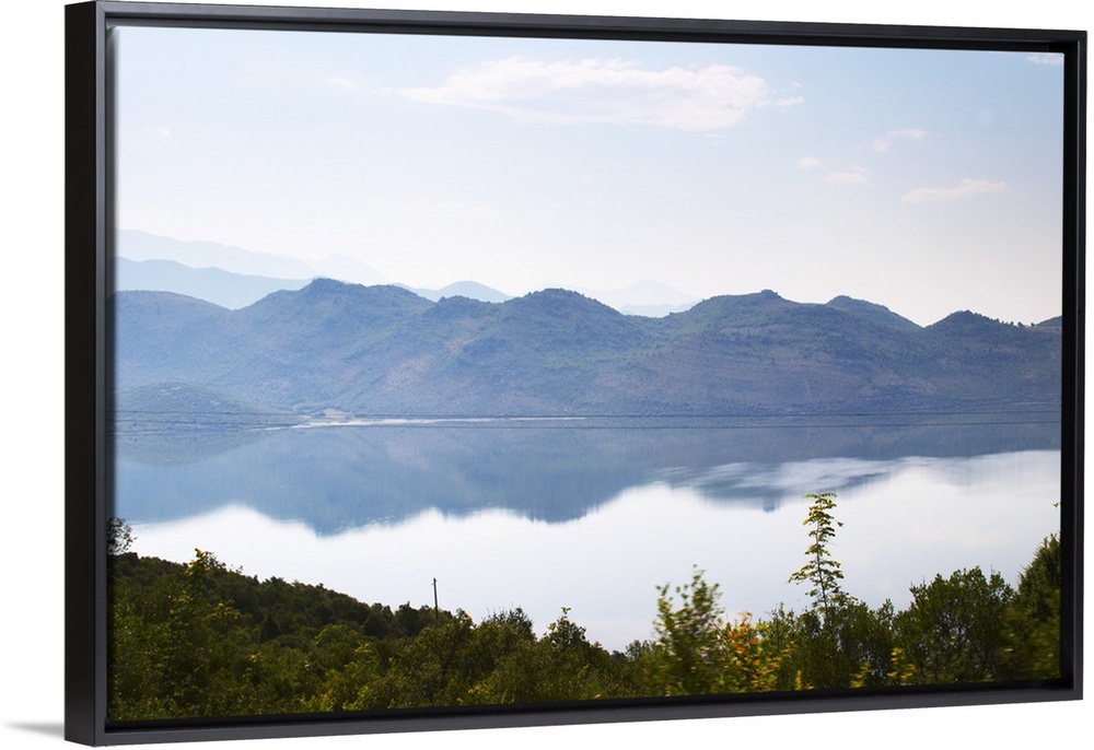 <p>View over the vast lake and marshland Skadarsko Jezero on the border between Montenegro and Albania. Mountains in Albania on the far side. Montenegro, Balkan, Europe.</p>