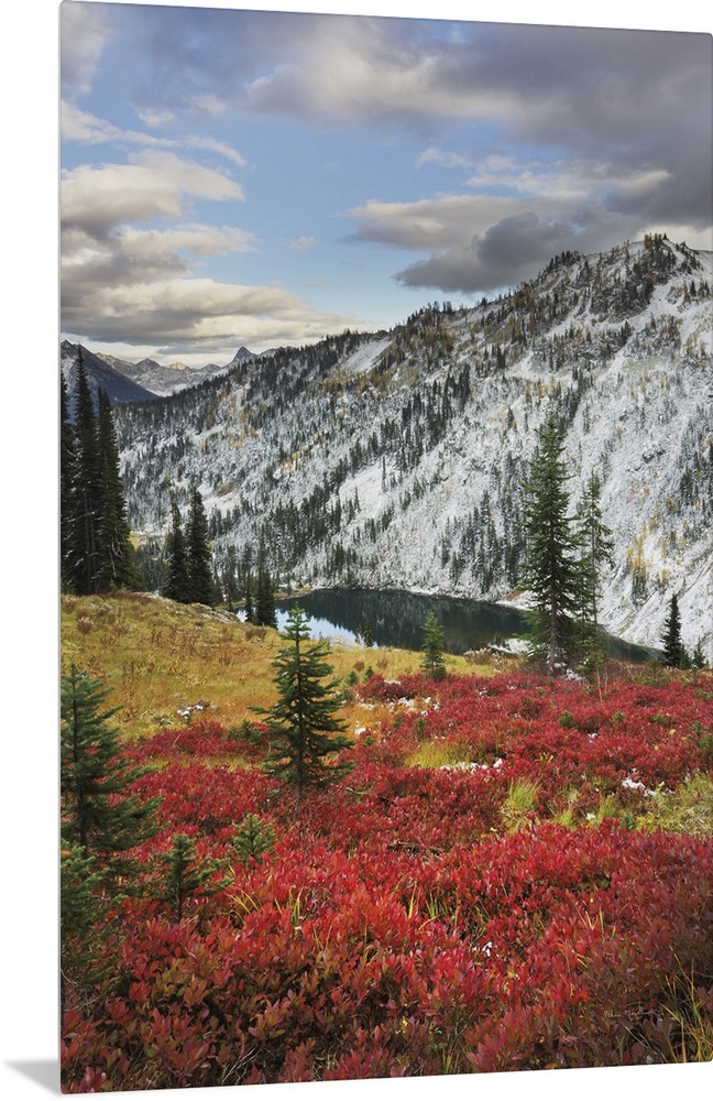 <p>Lake Ann in autumn with fresh snowfall. North Cascades, Washington.</p>