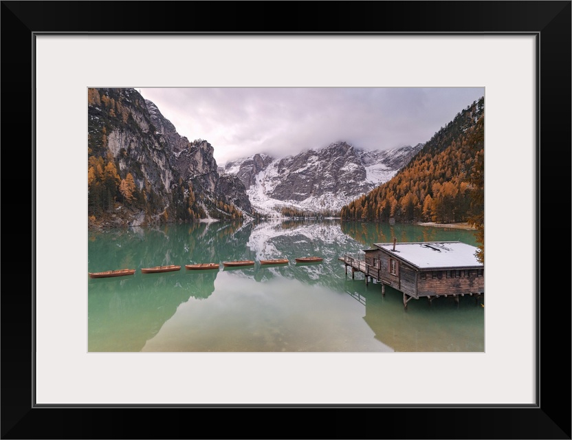 <p>Lake Braies (Pragser Wildsee) framed by colorful woods in autumn, Braies (Prags), Bolzano province, South Tyrol, Italy, Europe</p>