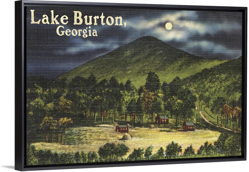 <p>Retro stylized art poster of a valley at night moon lightly shrouded by a cloudy sky.</p>