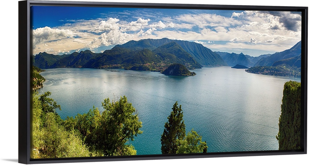 <p>Fine art photo of Lake Como in Italy with mountains in the distance under a cloudy sky.</p>