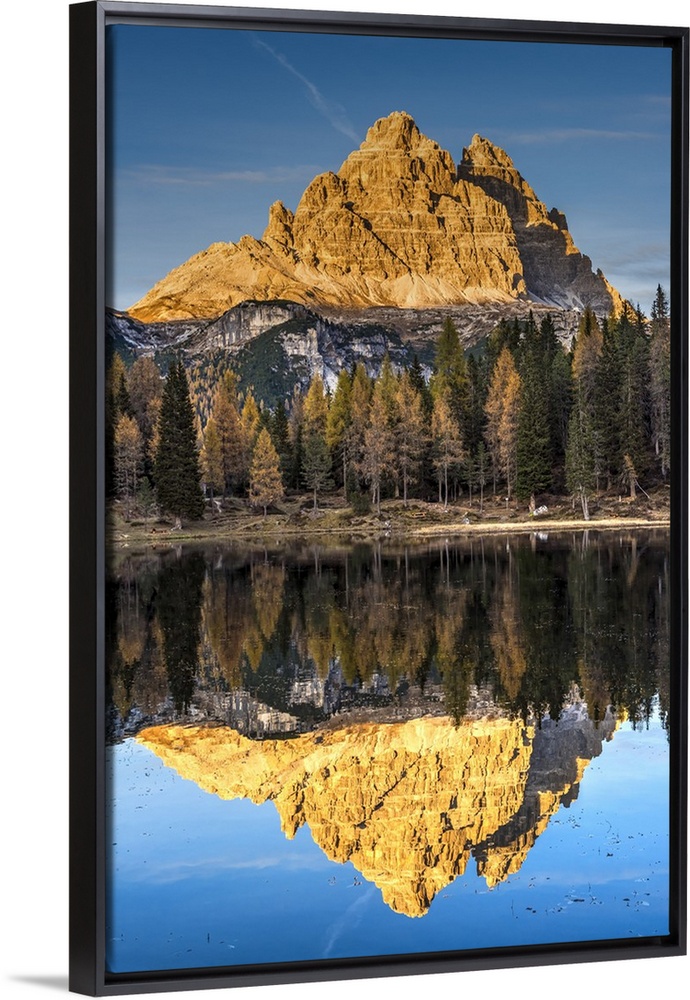 <p>Lake d'Antorno with Tre Cime di Lavaredo mountain group reflected in its waters, Misurina, Veneto, Italy</p>