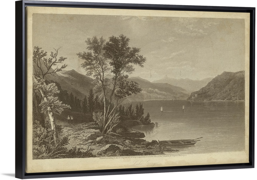 Art Rustic Drawing R. Hinshelwood Landscapes Lake Mountains New York Vintage Art Illustrations