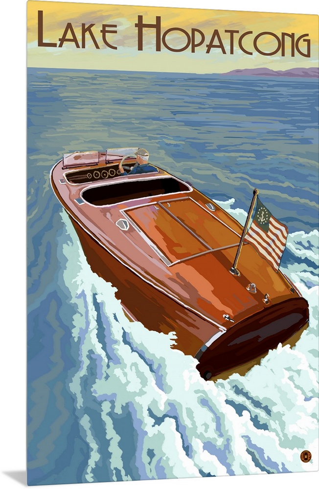 <p>Lake Hopatcong, New Jersey, Wooden Boat on Lake</p>