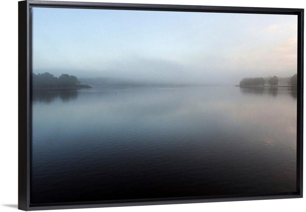 <p>A quiet natural foggy lake in the middle of the forest of Broceliande in France, minimalistic work.</p>