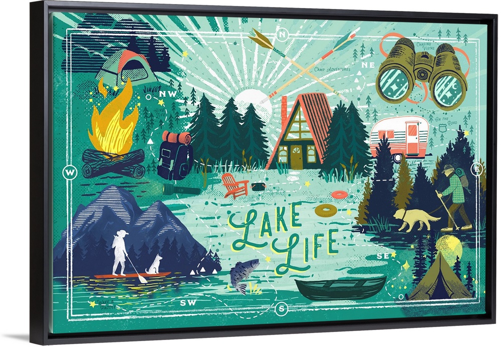 Art Cabin Wall Art Camping Lake Lantern Press Fishing
