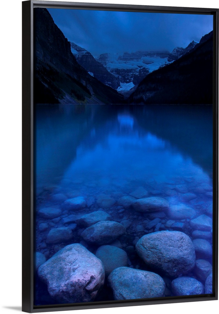 <p>Lake Louise after sunset on a very cloudy and cold day.</p>