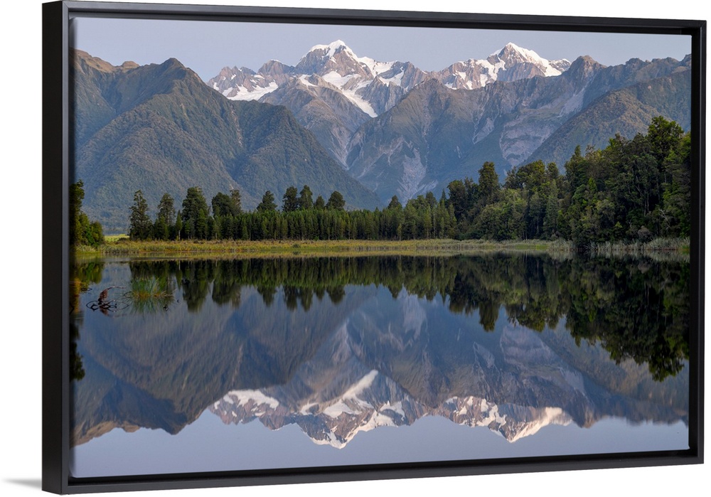 <p>Oceania, New Zealand, Aotearoa, South Island, West Coast, South Westland, Lake Matheson Near The Fox Glacier With View To Mount Cook And Mount Tasman</p>