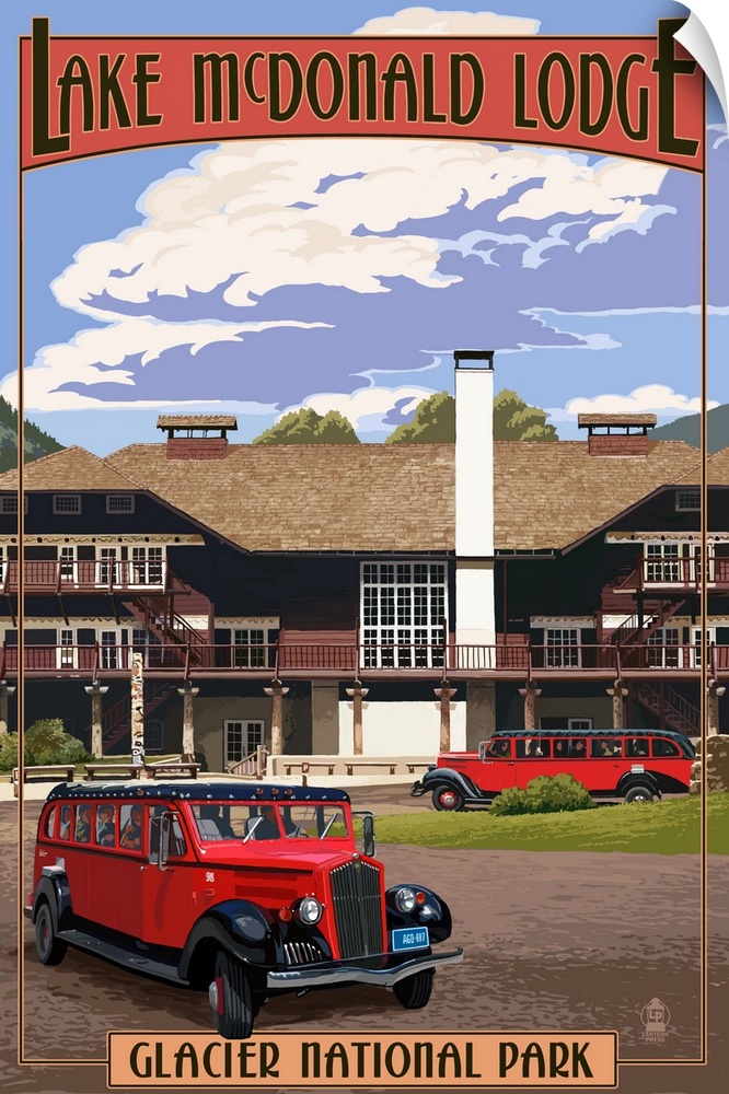<p>Lake McDonald Lodge and Red Jammers, Glacier National Park, Montana</p>