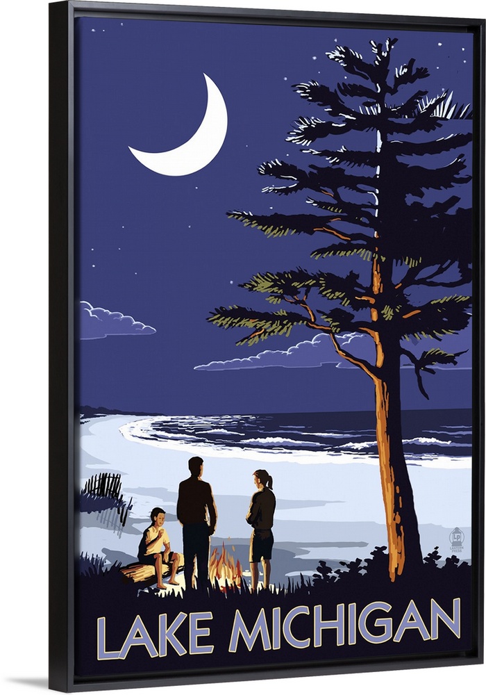 Art Moon Trees Lantern Press Lake Michigan Travel Posters Retro Travel Posters