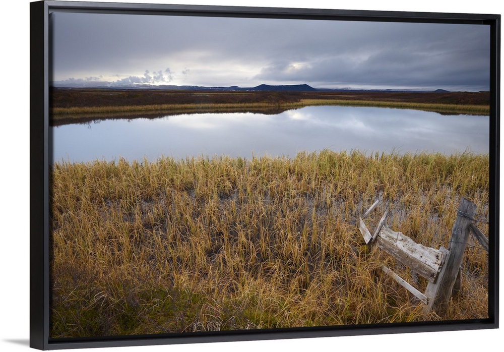 <p>Lake Myvatn, bird protected area in autumn, north-west shore of lake, looking eastwards, Hverfjall volcano visible in the distance, Myvatn, north Iceland, Iceland</p>
