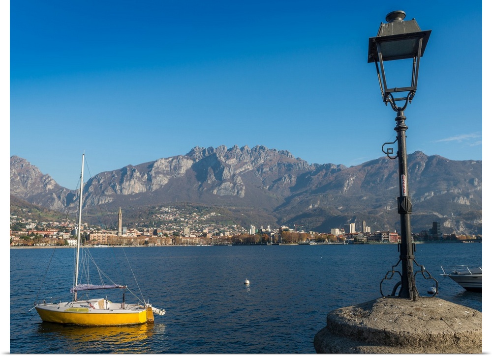 <p>Lake of Lecco, a branch of Lake Como in the southern Alps with the city of Lecco in the background, Lombardy, Italian Lakes, Italy</p>