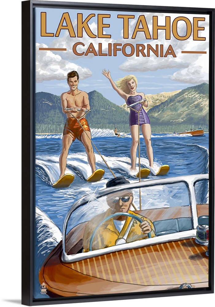 Art Lantern Press California Lake Tahoe Water Skiing Boat
