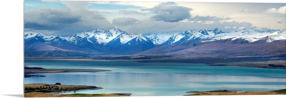 <p>Lake Tekapo, with snow covered mountains. Tekapo, New Zealand.</p>