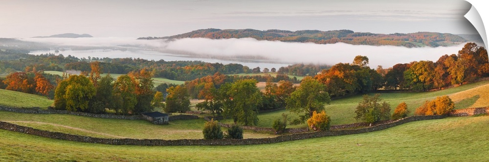 <p>Lake Windermere at Sunrise on Misty Autumn Morning, Lake District, Cumbria, England</p>