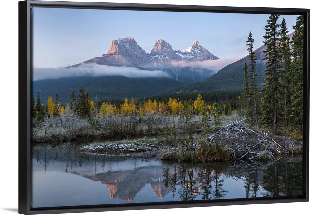 <p>Lake with mountains in background, Beaverlodge, Three Sisters, Canmore, Alberta, Canada.</p>