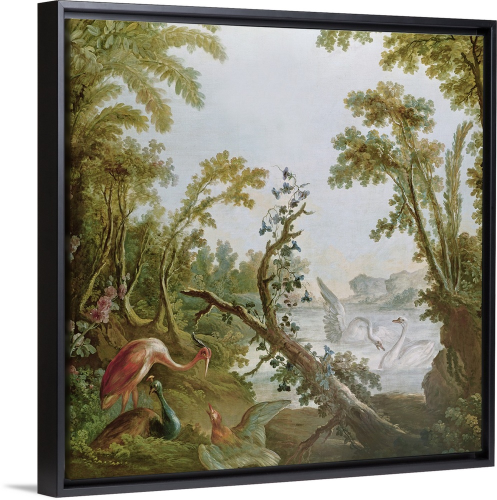 <p>XIR240280 Lake with swans, a flamingo and various birds, from the salon of Gilles Demarteau, c.1750-65 (oil on canvas) by Boucher, Francois (1703-70) (studio of); Musee de la Ville de Paris, Musee Carnavalet, Paris, France; (add.info.: lac avec cygnes, flamant et oiseaux divers;); Giraudon; French, out of copyright</p>