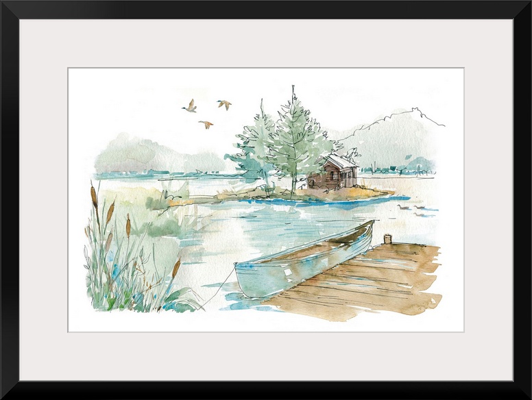Art Blue Wall Art Decorative Art Lake House Art Lake Painting Kayaking and Canoeing Anne Tavoletti Watercolor