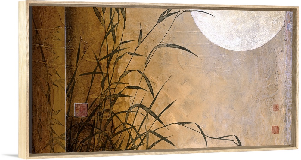 <p>A contemporary painting with bamboo and the moon with a rectangle border on the left.</p>