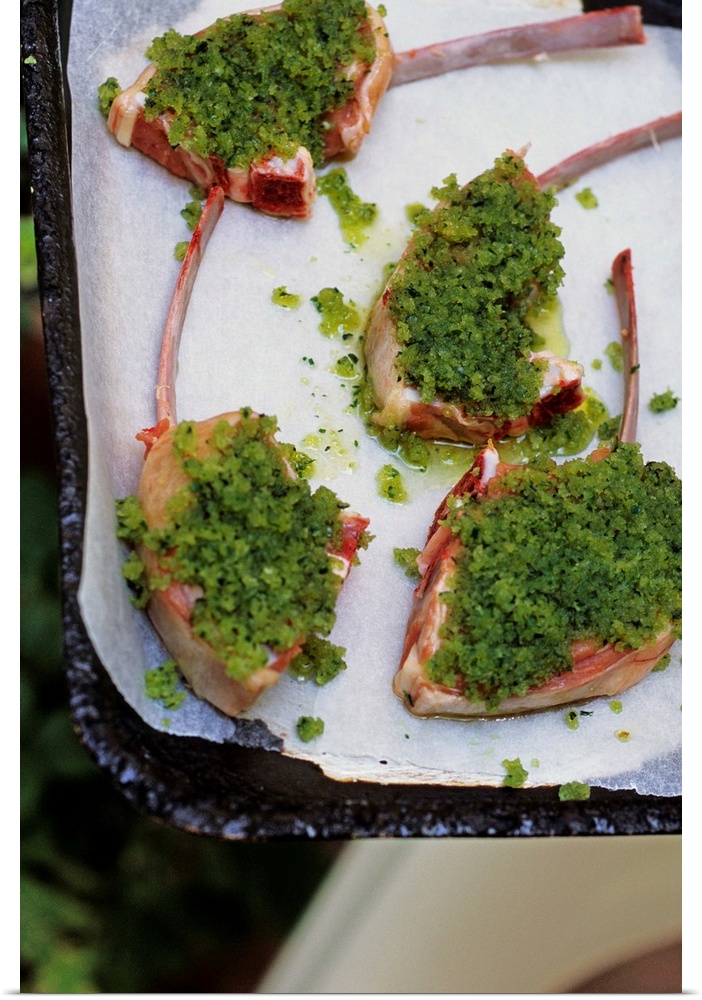 <p>Italy, Italia, Molise, Campobasso, Vecchia Trattoria da Tonino restaurant, preparation of lamb cutlets</p>