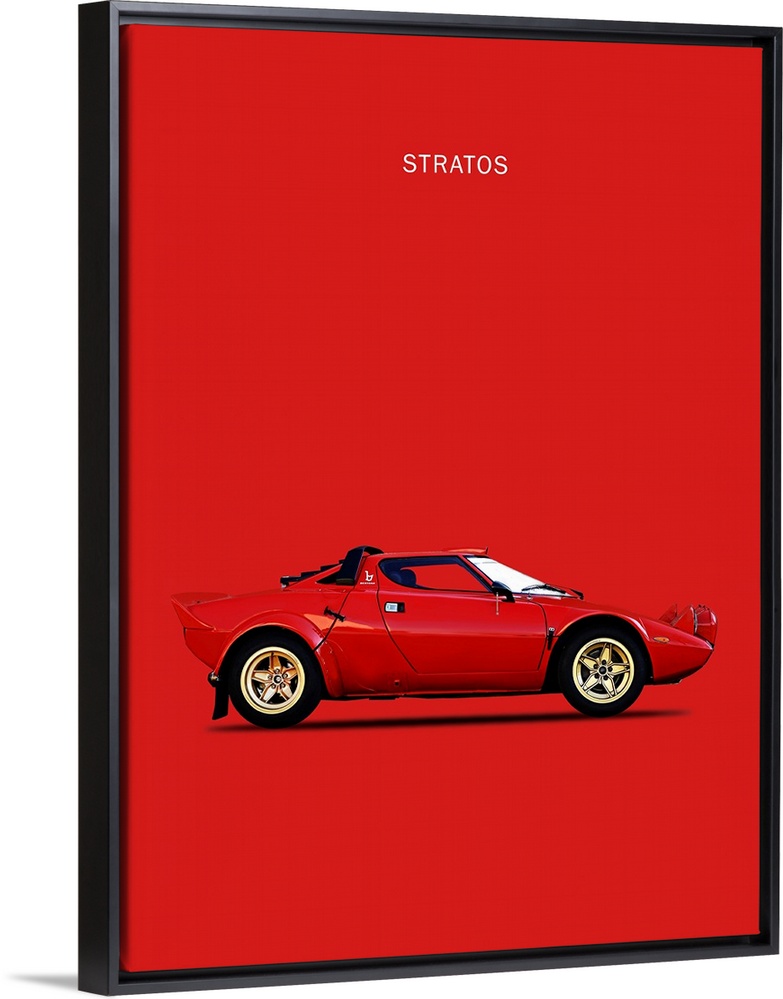 <p>Photograph of a red Lancia Stratos 1974 printed on a red background</p>