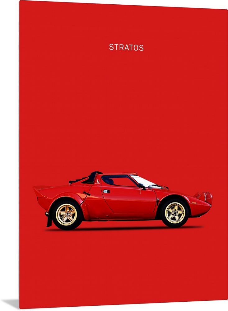<p>Photograph of a red Lancia Stratos 1974 printed on a red background</p>