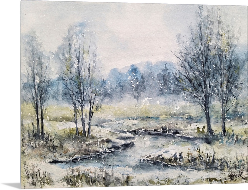 Art Contemporary Art Winter Landscapes River, Creek and Stream Snowscapes Trees Anna Mazur Painting Watercolor