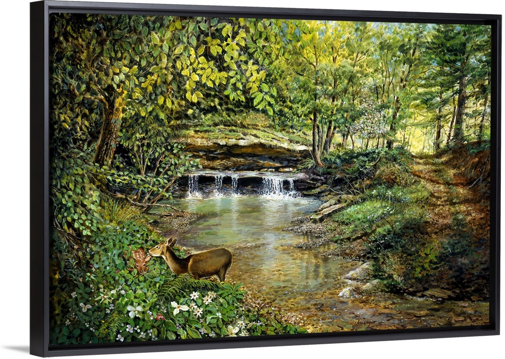 Art Contemporary Art Jess Hager Landscapes River, Creek and Stream Painting Wildlife Deer