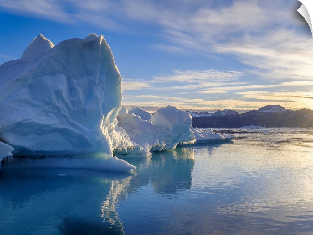 <p>Landscape with icebergs in the Sermilik (Sermiligaaq) Icefjord in East Greenland. Ammassalik, Danish Territory.</p>