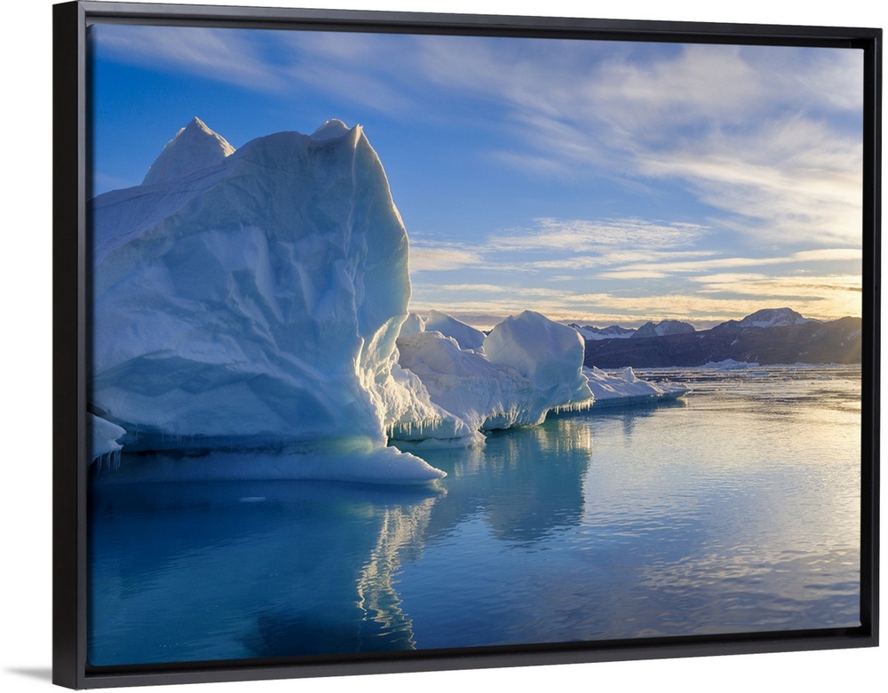 <p>Landscape with icebergs in the Sermilik (Sermiligaaq) Icefjord in East Greenland. Ammassalik, Danish Territory.</p>