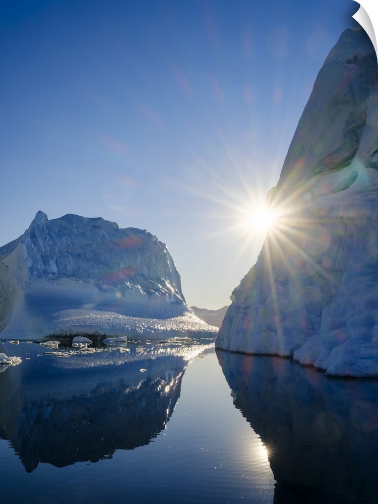 <p>Landscape with icebergs in the Sermilik (Sermiligaaq) Icefjord in East Greenland. Ammassalik, Danish Territory.</p>