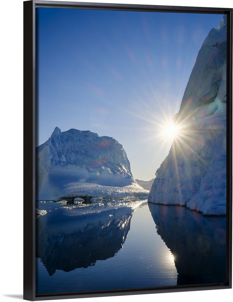 <p>Landscape with icebergs in the Sermilik (Sermiligaaq) Icefjord in East Greenland. Ammassalik, Danish Territory.</p>