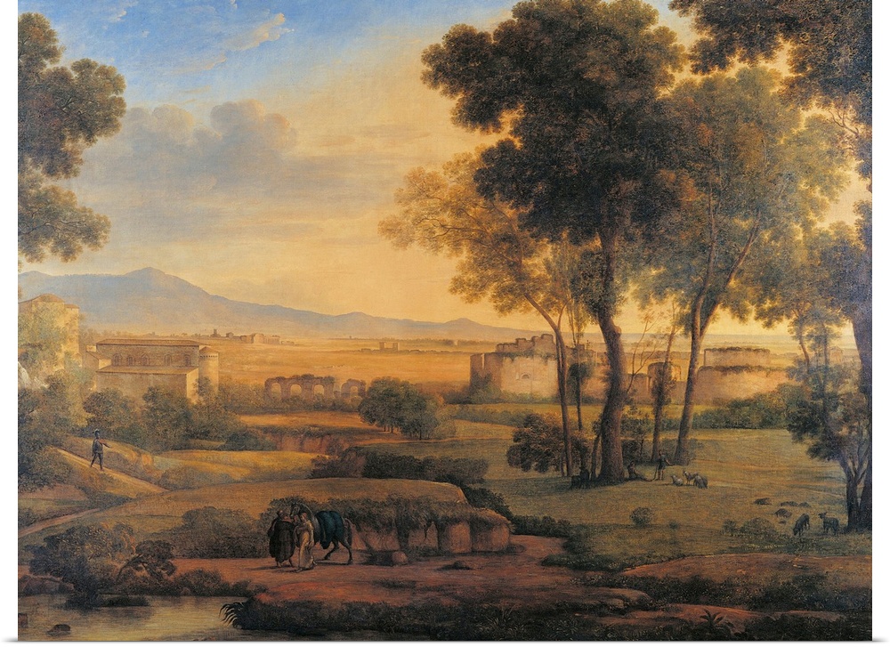 <p>Landscape with Ruins and Pilgrims, by Rosa Mezzera, 1810, 19th Century, oil on canvas, cm 100 x 133 - Italy, Lombardy, Milan, Brera Academy of Fine Art Collections, (on deposit at the Camera dei Deputati. All. Countryside trees figures houses ruins gilded</p>