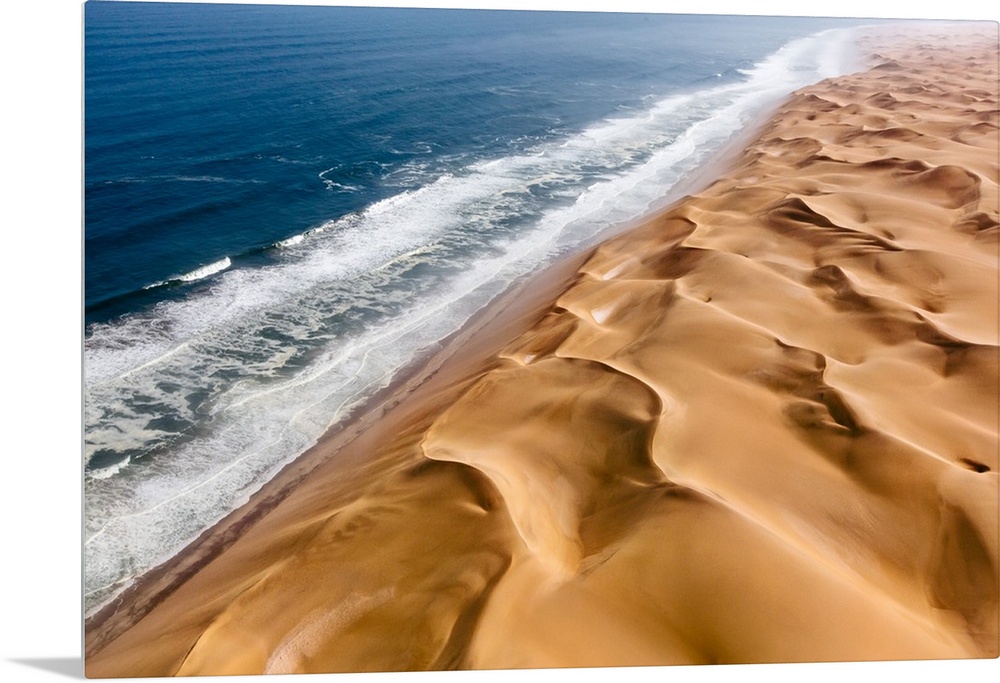 <p>Langewand, Aerial view of where the Atlantic Ocean meets the sea of dunes in Western Namibia.</p>