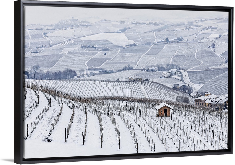 <p>Langhe, Cuneo district, Piedmont, Italy. Langhe wine region winter snow</p>