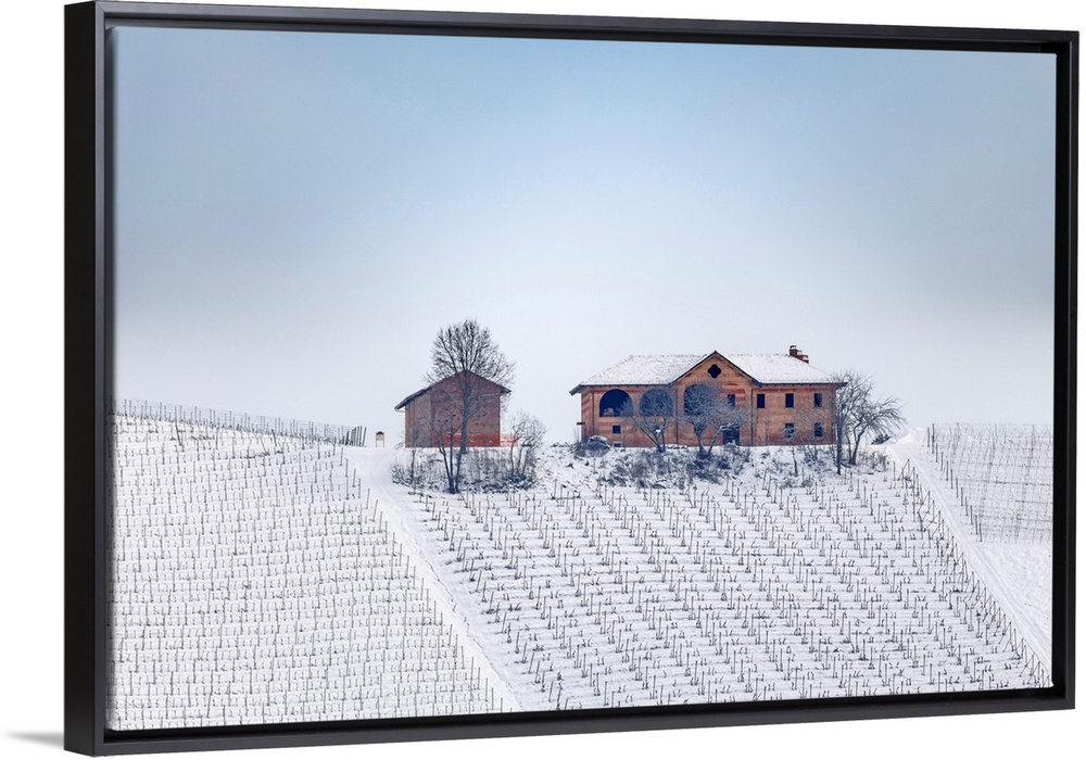 <p>Langhe, Cuneo District, Piedmont, Italy. Langhe Wine Region Winter Snow, Fontanafredda</p>