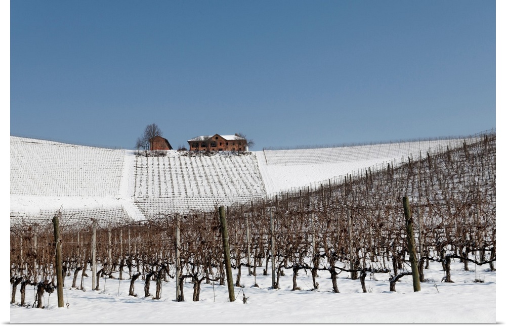 <p>Langhe, Cuneo District, Piedmont, Italy. Langhe Wine Region Winter Snow, Fontanafredda</p>