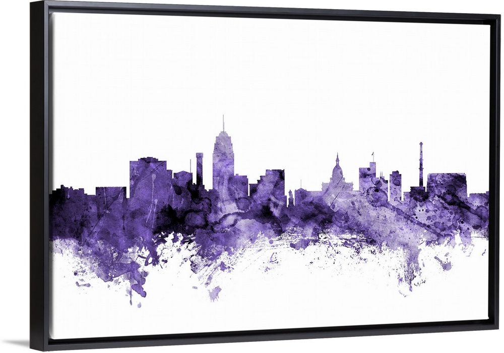 <p>Watercolor art print of the skyline of Lansing, Michigan, United States</p>