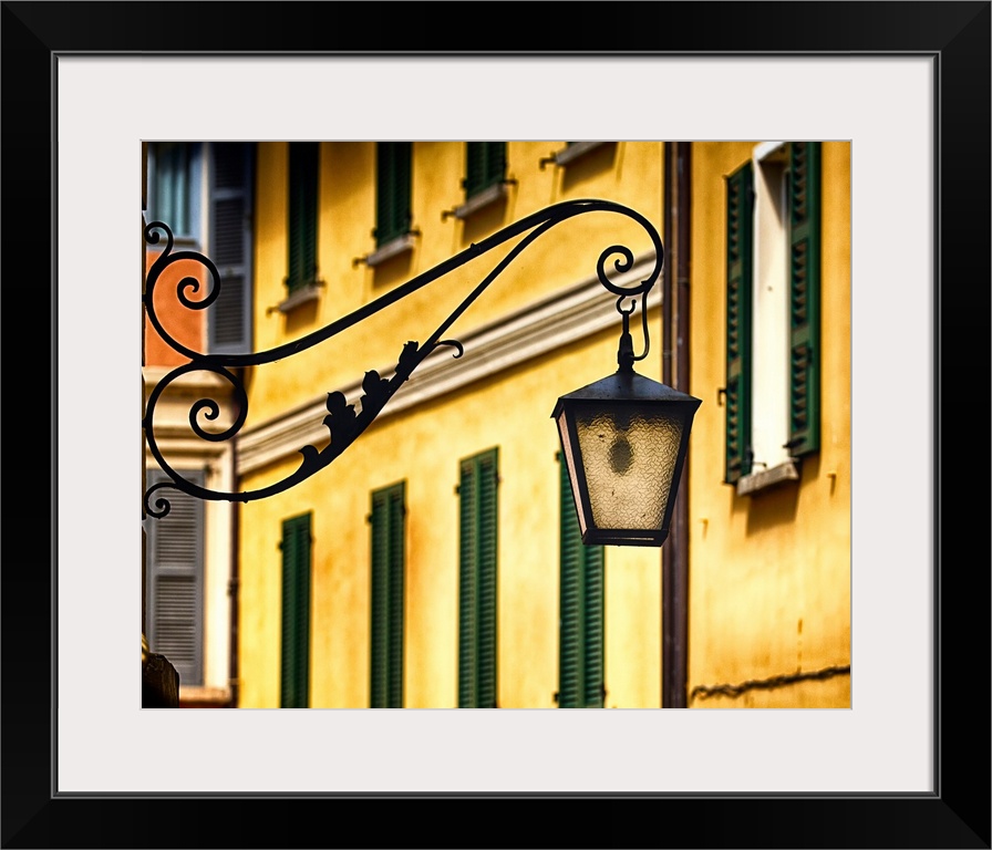 <p>Fine art photo of a lantern on an iron hanger in an Italian city.</p>