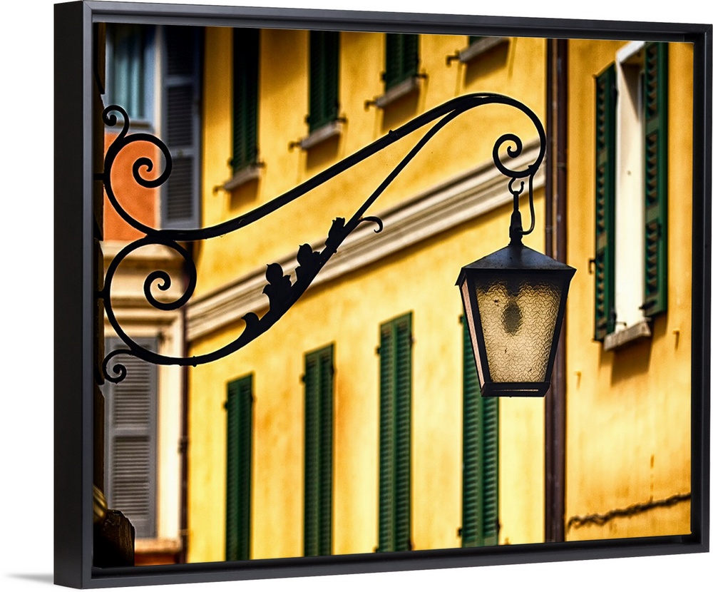 <p>Fine art photo of a lantern on an iron hanger in an Italian city.</p>