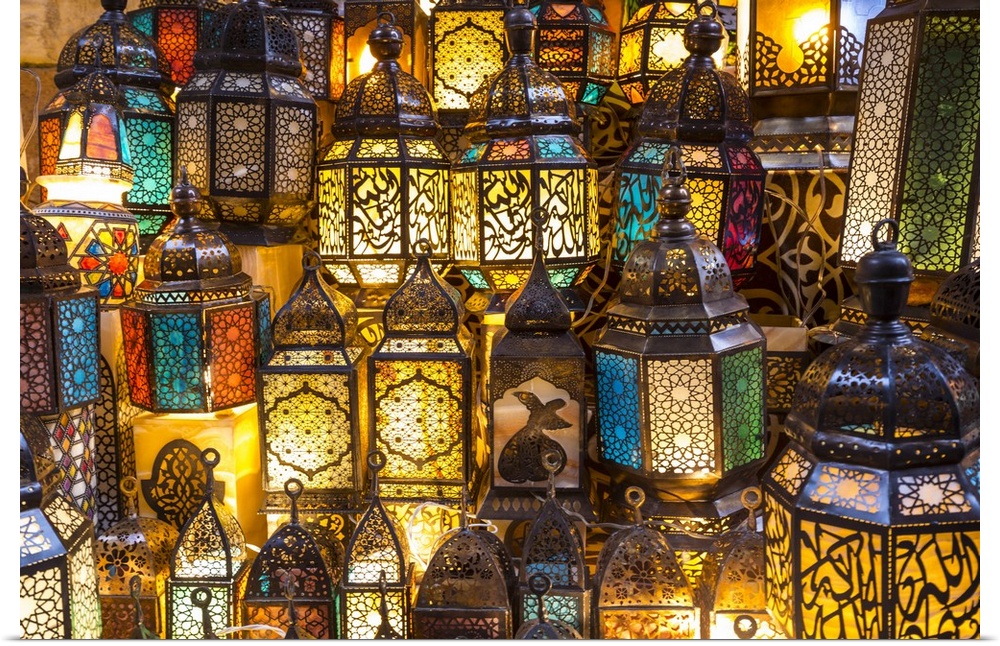 <p>Lanterns for sale in a shop in the Khan el-Khalili bazaar (Souk), Cairo, Egypt.</p>