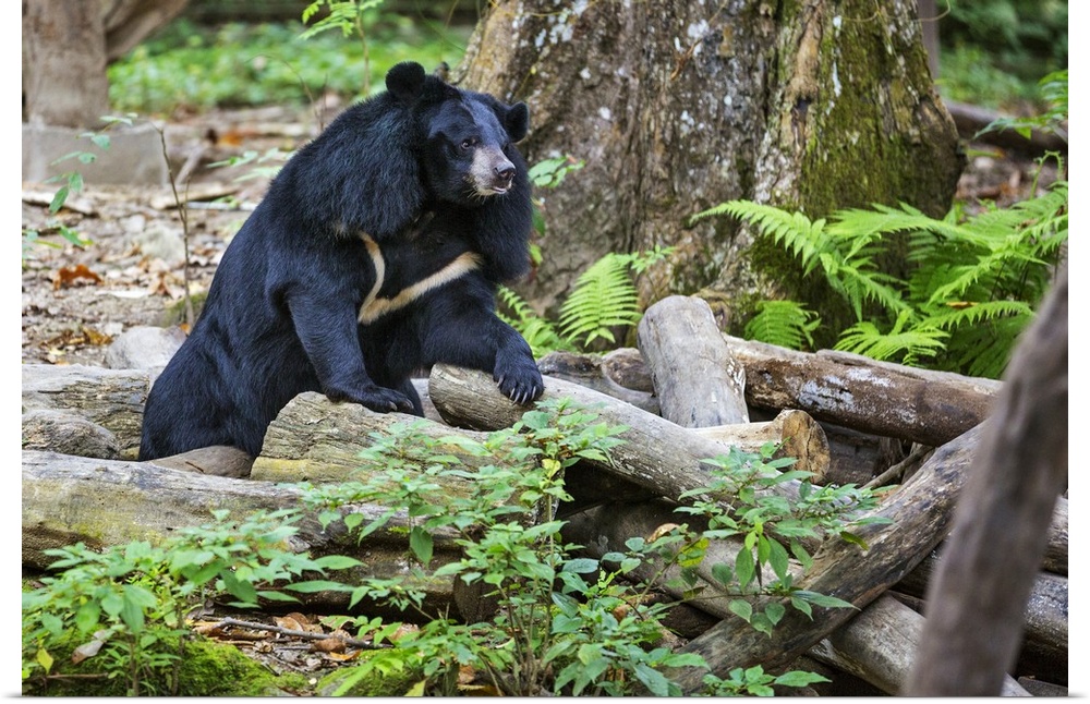 <p>Laos, Kuang Si, Luang Prabang Province. An Asiatic Black Bear in the Tat Kuang Si rescue centre near Luang Prabang. Most of the bears in the centre were confiscated by the Lao Government from illegal poachers.</p>