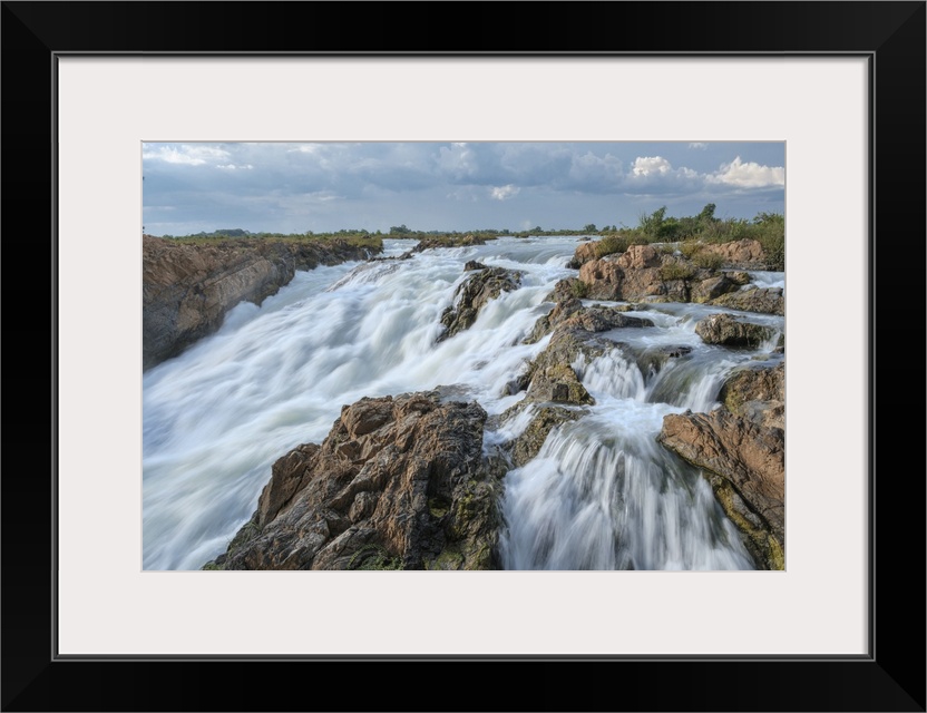 <p>Laos, Champasak Province, Si Phan Don, Don Khon, Mekong, view of the Liphi Somphamit Waterfall aka the Liphi Waterfall.</p>