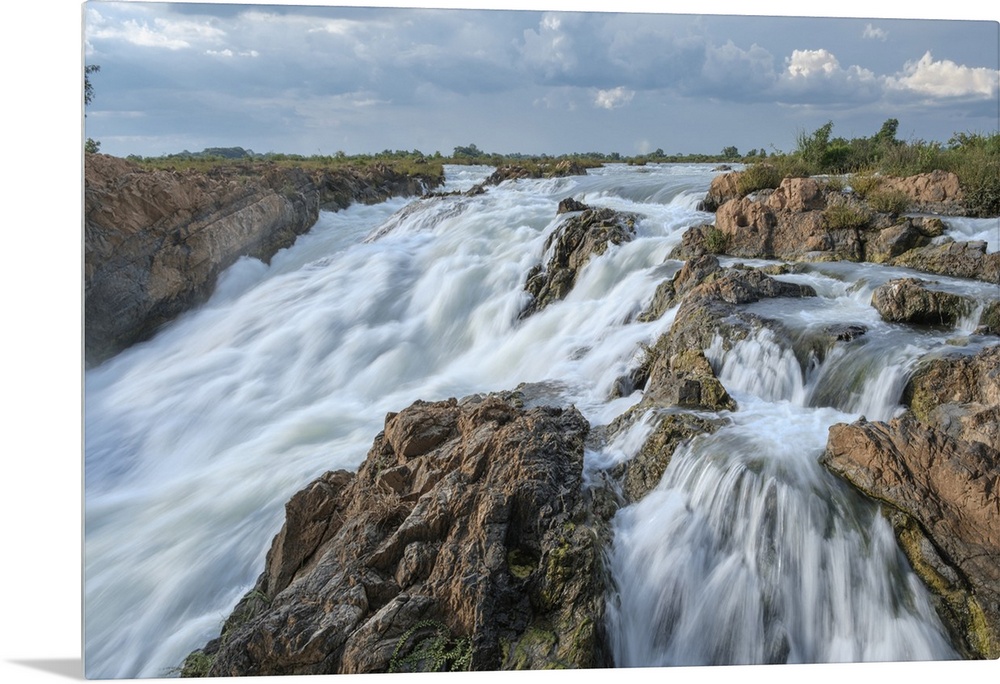 <p>Laos, Champasak Province, Si Phan Don, Don Khon, Mekong, view of the Liphi Somphamit Waterfall aka the Liphi Waterfall.</p>