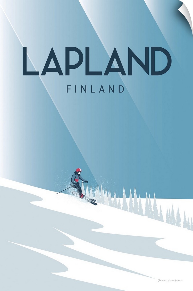 Art Decorative Art Omar Escalante Graphic Art Landscapes Snowscapes Latin Art Finland Skiing Travel Posters Contemporary Travel Posters