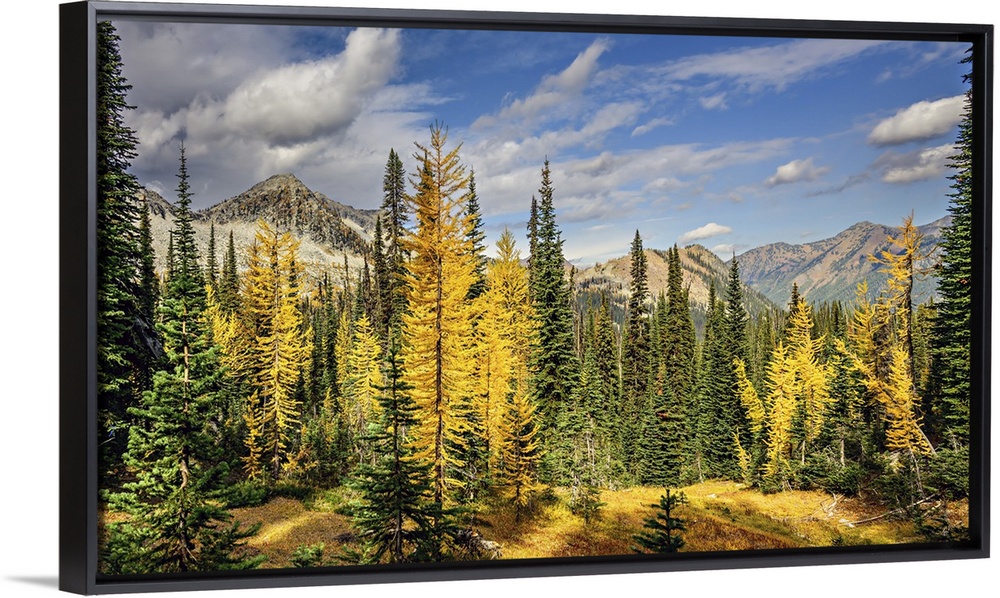 <p>Alpine larches and sub-alpine fir in fall in the mountains.</p>
