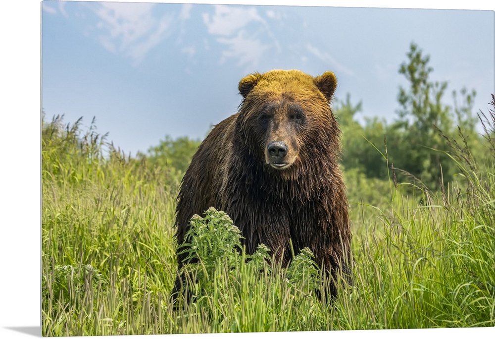 <p>Large brown bear boar (Ursus arctos) looking at camera, Alaska Wildlife Conservation Center, South-central Alaska; Portage, Alaska, United States of America</p>